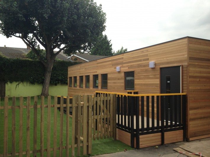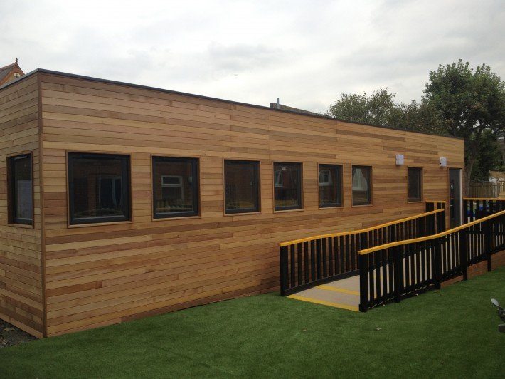 The external finish of Cedar Cladding enhanced the appearance of the building to give a environmentally sympathetic solution. Any external finish can be incorporated into our modular buildings with Cedar Cladding being one of many options available. The classroom was also fitted with air conditioning and a suspended ceiling.